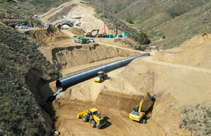 国庆中秋假期,记者来到国道109线、208线大同市过境公路改线工程采凉山隧道出口施工现场,只见装载机、压路机等大型机械往来穿梭,机器轰鸣声与工人的作业声交织在一起,一幅热火朝天的建设画卷在山谷间徐徐展开。