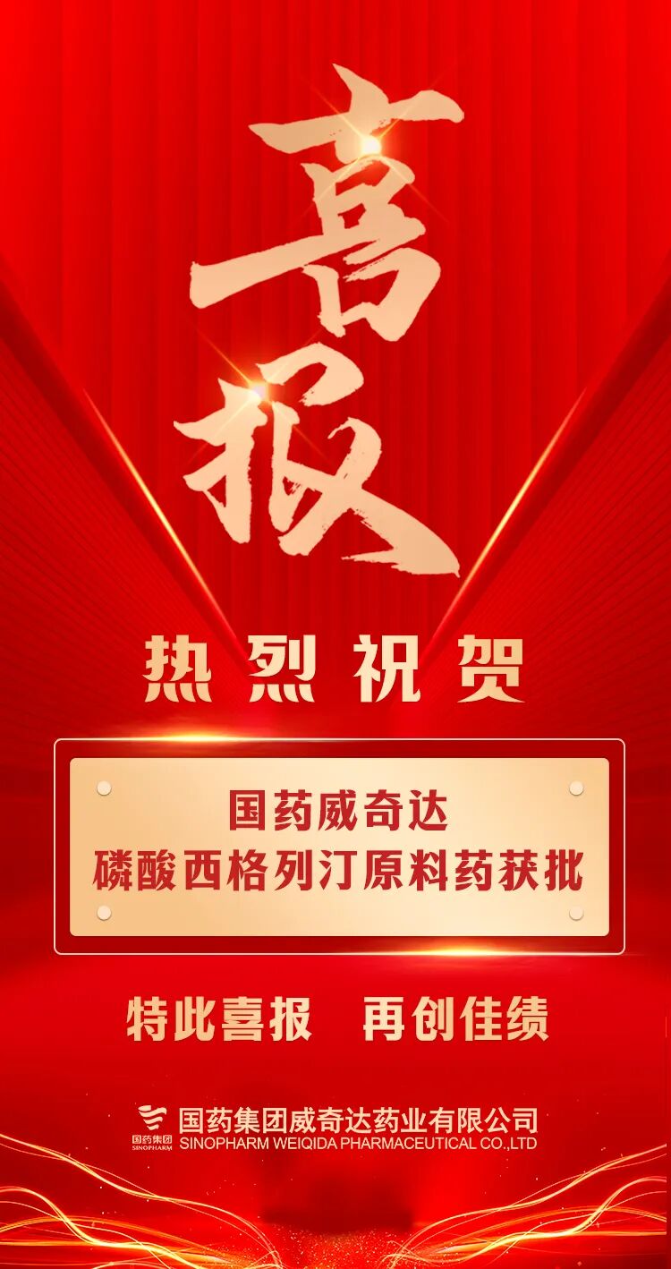国药威奇达始终秉持“关爱生命、呵护健康”的企业理念,此次磷酸西格列汀原料药的获批,是公司持续优化产业结构与产品布局、丰富特色原料药产品线的重要成果,未来公司将继续加强技术研发与产业链协同,为人民群众健康提供更多优质、可及的药品选择,为服务“健康中国”建设作出应有贡献。