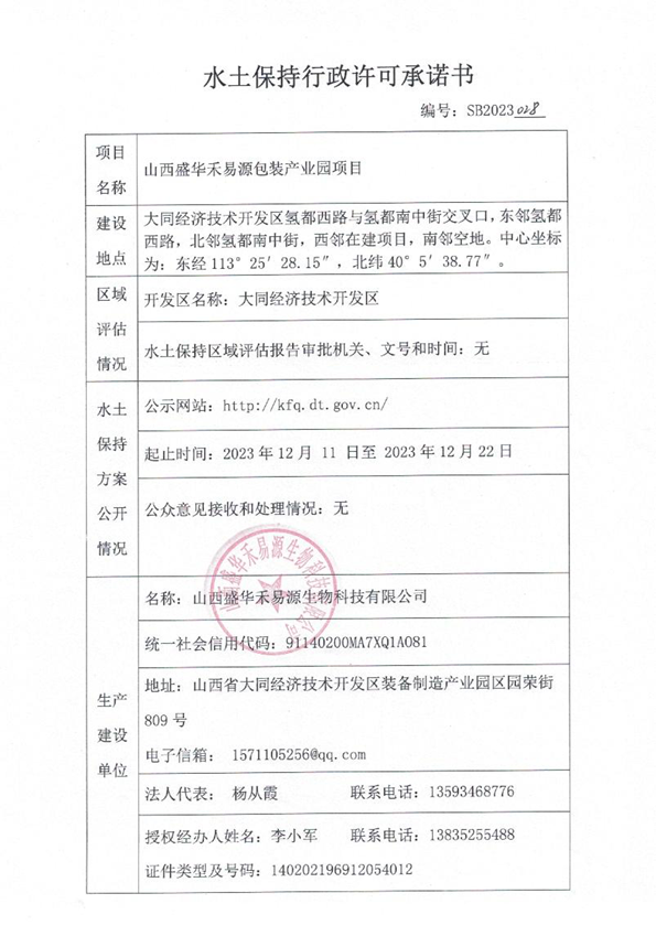关于山西盛华禾易源包装产业园项目水土保持方案的批复